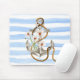 Silver nautical anchor with rope and white daisy bouquet on blue and white watercolor stripe background