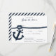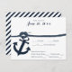 Anchor and rope design 4.25 x 5.5 size rsvp card dark navy blue and white, wedding design, perfect for a destination beach or cruise wedding.
