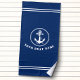 Nautical Anchor and Rope with Boat Name Navy Blue Beach Towel