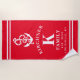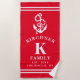 Nautical Anchor Beach House Family Name Red Beach Towel. Personalise this custom design with your own family name, year established, city and state. The perfect summer beach towels for your family lake house, cottage, or beach house.