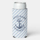 Nautical Anchor Blue White Stripe Personalised Seltzer Can Cooler
