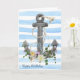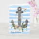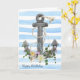 old anchor with rope and flower bouquet on blue and white striped watercolor background