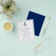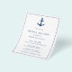 Nautical budget bridal shower invitation flyer with a simple and modern design featuring a navy blue anchor along with your event details inside of a border, over a white background. An elegant design that is perfect for a summer coastal themed celebration by the beach. These cheap bridal shower invitations are printed on sheets of paper for a budget friendly option. PLEASE NOTE: These do not include envelopes.