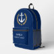 Nautical Anchor Captain Boat Name Gold Laurel Navy Printed Backpack
