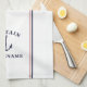 Nautical anchor captain with your name in block text hand towels. Navy blue on a white background with navy blue and red striped border.