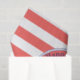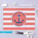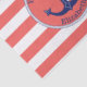 This nautical themed tissue paper has a navy blue anchor with a circular rope border and a coral and white striped background. Navy blue text above the anchor reads "Happy Birthday". Text below is a name for you to personalise.