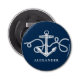 This personalised button bottle opener has a classic nautical anchor design on a navy blue background.