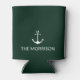 Nautical anchor dark pine green custom Boat Name Can Cooler