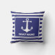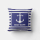 Nautical Anchor Design Navy Blue White Stripe Pill Cushion