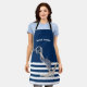 Nautical,Anchor Dolphin Navy Blue Striped Apron
