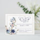 Nautical Anchor Floral Elegant Script Navy Blue RSVP Card