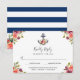 Nautical Anchor Floral Navy Blue Stripes RSVP Card