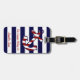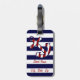 This nautical anchor luggage tag will look cute and fashionable whether flying to the beach or cruising the seas. The design features a red and white diagonally striped anchor on horizontal navy and white stripes. Customise with your name and address.