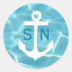 Nautical Anchor Monogram Aqua Classic Round Sticker
