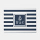 Nautical Anchor Monogram Navy Blue Stripe Doormat