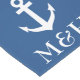 Nautical anchor monogram table runner for wedding. Navy blue. Great for romantic wedding party, bridal shower, birthday etc. Elegant monogrammed design with weathered boat anchor symbol and name initial letters of bride and groom couple. Also great for anniversary party. Customisable colour. Personalised design.