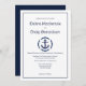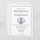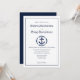 A Nautical Theme Wedding Invitation designed with an Anchor on a White Background with Navy trim and text. The front page text includes: The Bride and Groom's Full Names, Wedding Date, Time, and Location. The reverse text includes: Reception, The Location and Reception Times, in white text on a matching Navy background. To personalise, simply insert your text into our easy template, replacing the sample.