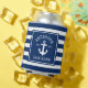 Nautical Navy Blue Striped Anchor Family Name Lake House White Frame Can Cooler