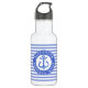 NewparkLane - Modern design, personalised Water Bottle, with a navy blue striped pattern and an anchor in a blue circular frame. Easy to customise with your name and favourite city. All text styles, colours, sizes can be modified to fit your needs.