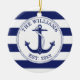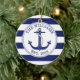 Nautical Anchor Navy Blue Stripe Monogrammed Ceramic Ornament