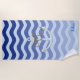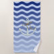 Nautical Anchor Navy Blue Stripe Waves Beach Towel
