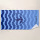 Nautical Anchor Navy Blue Stripe Waves Beach Towel
