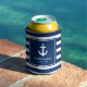 Nautical Anchor Navy Blue Striped Wedding Can Cooler