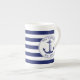 Nautical Anchor Navy Blue Stripes Family Name Bone China Mug
