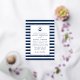 Modern Elegant Nautical Anchor Wedding Invitation. White Anchor with Gold Foil Ring around it. Navy Blue and White Stripes. Gold Foil Frame.