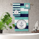 Marine Nautical Anchor Navy Blue White Teal stripes Bath Towel Set Customise by adding Boat Name with the date Established