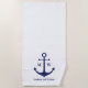 Nautical anchor navy blue white custom monogram beach towel