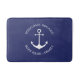 Custom Boat name or Family name, Welcome Aboard, nautical white anchor. white letters navy blue Bath Mat.