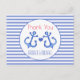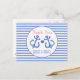 NewparkLane - Modern design Postcard, with a navy blue striped pattern, and two anchor and a heart in a white circular frame. Add your own names and date, and customise the text if you wish.