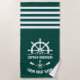 Nautical Anchor & Oars Captain or Boat Name Green Beach Towel