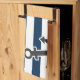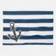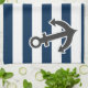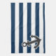 Nautical Anchor on Dark Midnight Blue Stripes Tea Towel