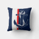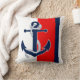 Nautical Anchor On Red White Blue Stripes Pattern Cushion