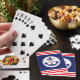 These patriotic inspired nautical playing cards have a red, white and blue anchor decorated with stars and stripes on a white circle with a rope border. Two Monogram initials are on either side of the anchor for you to personalise. Background is navy blue with red and white stripes on each end.