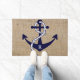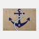 Vintage nautical anchor with rope on a faux burlap texture Personalised Initial Monogram door mat.