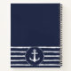Create a personalised navy blue and white nautical notebook for ideas and plans with the stylish typography, anchor and stripes design. Type your name by using the template to create a unique present for your loved ones. Stripes have a hand-drawn look.
