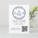 Modern Wedding Save the Date with QR Code and nautical theme. This save the date invitation card features your wedding date and location, set into a boating theme logo in traditional blue and white. The template is set up for you to add your wording and wedding website url for the qr code.