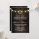 Vintage Rustic Nautical Anchor Lighted Rehearsal Dinner Invitations - features a rustic barn or wooden background with string lights and an elegant gold anchor. The back features the same background with string lights.