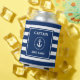 Nautical Anchor Rope Blue Striped Captain Name Can Cooler
