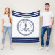 Nautical Anchor & Rope Boat Name Navy Blue & White Fleece Blanket