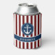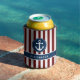 Nautical Anchor Rope Navy Red White Stripes Custom Can Cooler