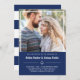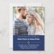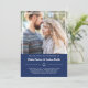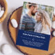 A photo wedding invitation for a nautically themed wedding with your photo framed by a white rope border. Add your names in a bold modern script above an anchor divider against a navy blue background.