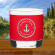 Nautical Anchor Rope Red White Blue Monogram Name Whiskey Glass