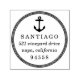 With a nod to the nautical, our return address stamp features a braided rope border with your single initial monogram and return address details inside, topped by a small nautical anchor illustration.