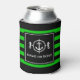 Nautical Anchor and Seahorse with your Personalised Name or Boat Name on a Hot Lime Green and Black striped Can Cooler.