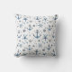 Blue and white nautical themed home decor throw pillow with anchors, sailboats, seashells.
