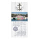 A nautical themed, blue & grey striped striped rack card featuring white rope wrapping around a 3D, realistic looking anchor and a whitewashed wood background